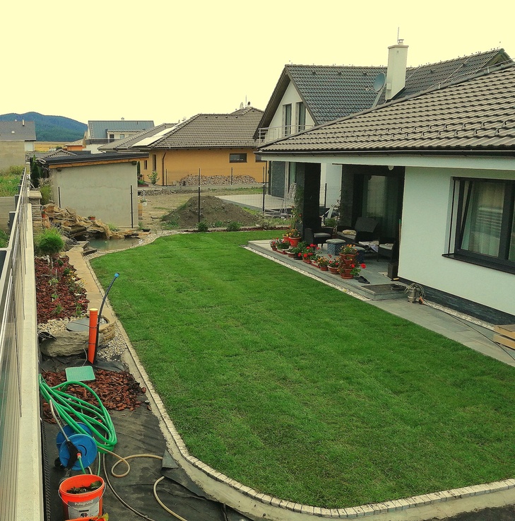 - pokladanie a výsev trávy